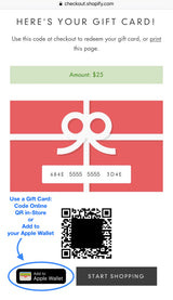 Cold Spring Apothecary Gift Cards are instantly delivered by email and text. After check out, you will receive a sharable link that contains the Gift Card code which can be used at our web store checkout and a QR code that you can use at our retail shop like a physical gift card. You can also add the gift card to your Apple Pay Wallet. Our gift cards have no additional processing fees.